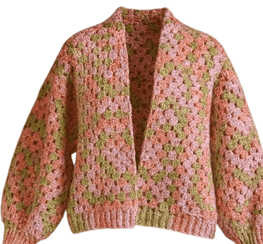 We sell unique crochet designs like the Octagon Cardigan, Tatreez Cardigan, and The Quadrigon, crafted with love.